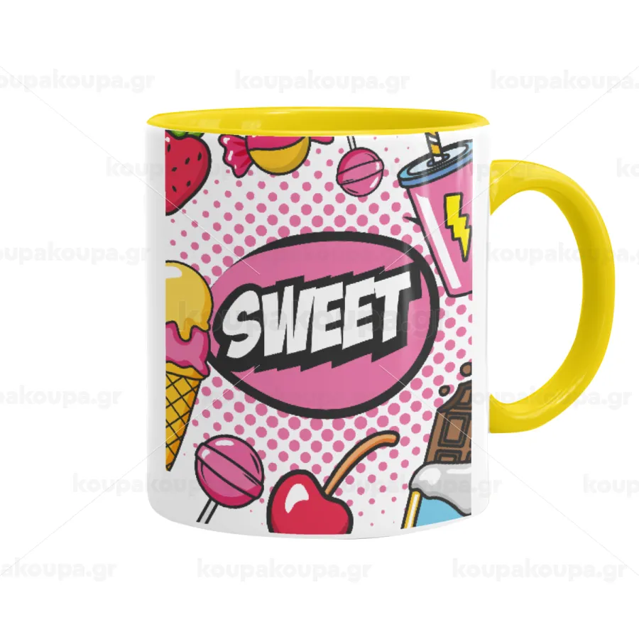 SWEET, Κούπα χρωματιστή κίτρινη, κεραμική, 330ml