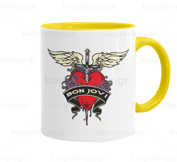 Bon Jovi, Κούπα χρωματιστή κίτρινη, κεραμική, 330ml