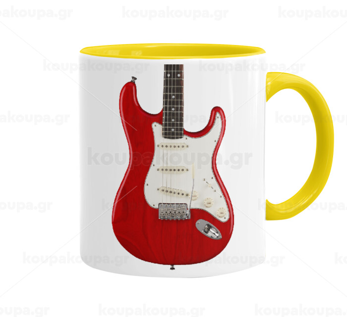 Guitar stratocaster, Κούπα χρωματιστή κίτρινη, κεραμική, 330ml
