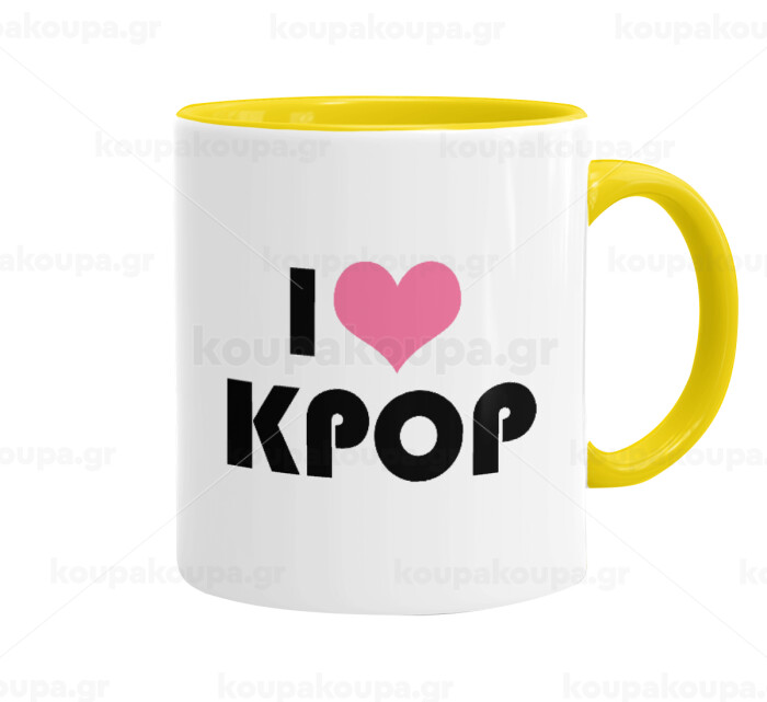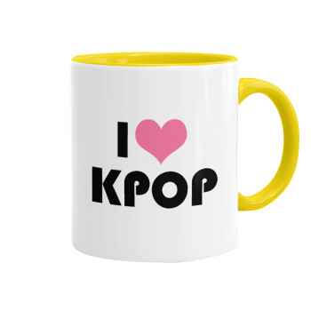 I Love KPOP, Κούπα χρωματιστή κίτρινη, κεραμική, 330ml