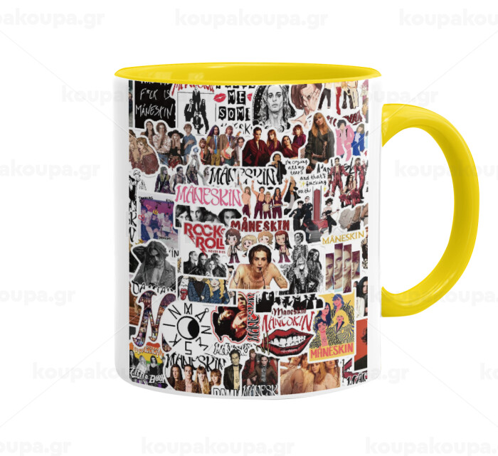 Maneskin stickers, Κούπα χρωματιστή κίτρινη, κεραμική, 330ml