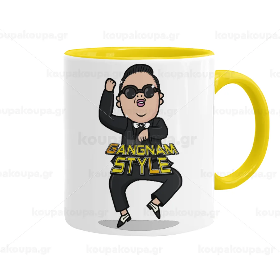 PSY - GANGNAM STYLE, Κούπα χρωματιστή κίτρινη, κεραμική, 330ml