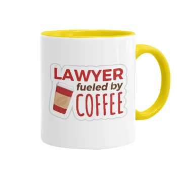 Lawyer fueled by coffee, Κούπα χρωματιστή κίτρινη, κεραμική, 330ml