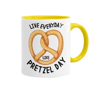 The office, Live every day like pretzel day, Κούπα χρωματιστή κίτρινη, κεραμική, 330ml