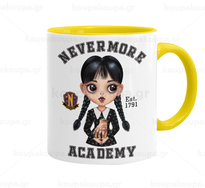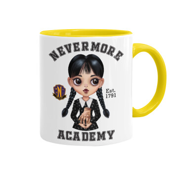 Wednesday Adams, nevermore, Κούπα χρωματιστή κίτρινη, κεραμική, 330ml