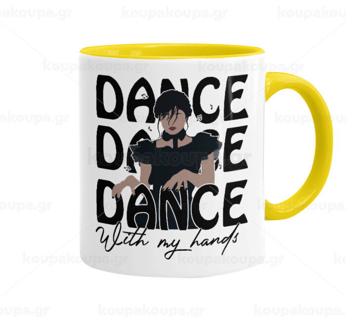 Wednesday dance dance dance, Κούπα χρωματιστή κίτρινη, κεραμική, 330ml