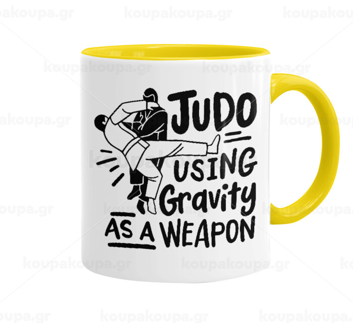 Judo using gravity as a weapon, Κούπα χρωματιστή κίτρινη, κεραμική, 330ml