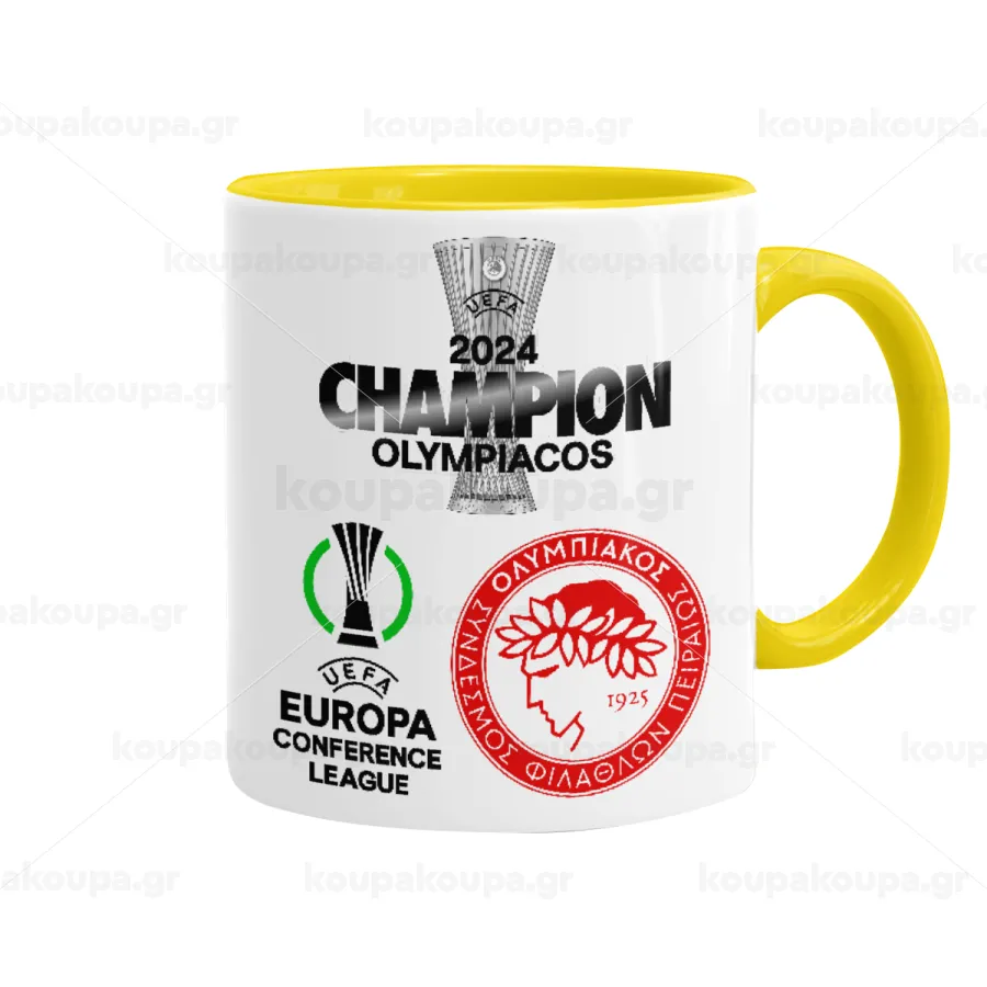 Olympiacos UEFA Europa Conference League Champion 2024, Κούπα χρωματιστή κίτρινη, κεραμική, 330ml