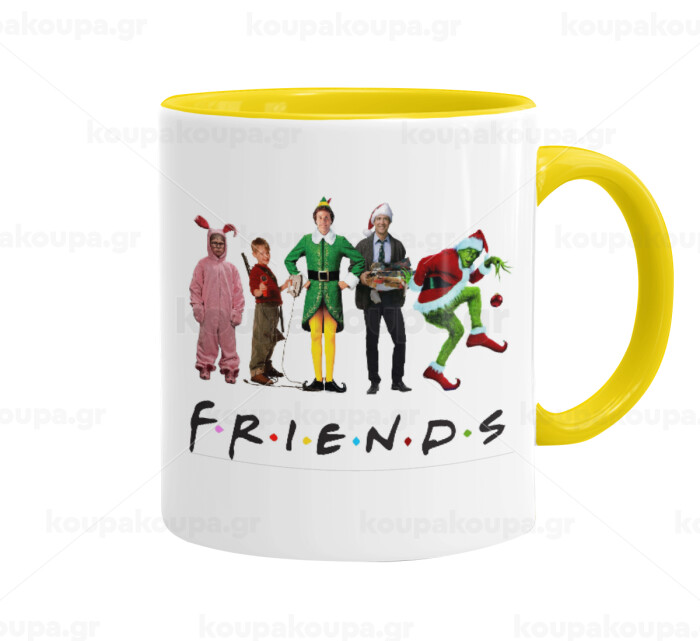 Christmas FRIENDS, Κούπα χρωματιστή κίτρινη, κεραμική, 330ml