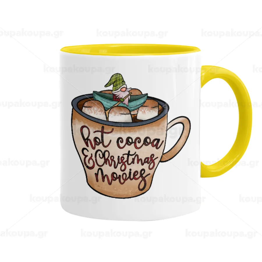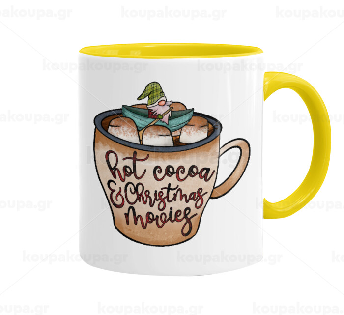 Hot Cocoa And Christmas Movies, Κούπα χρωματιστή κίτρινη, κεραμική, 330ml