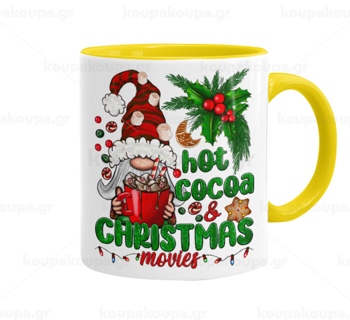 Hot cocoa and Christmas movies, Κούπα χρωματιστή κίτρινη, κεραμική, 330ml