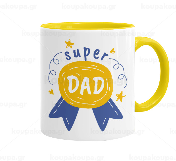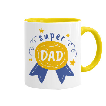 Μπαμπά είσαι για μετάλλιο, Κούπα χρωματιστή κίτρινη, κεραμική, 330ml