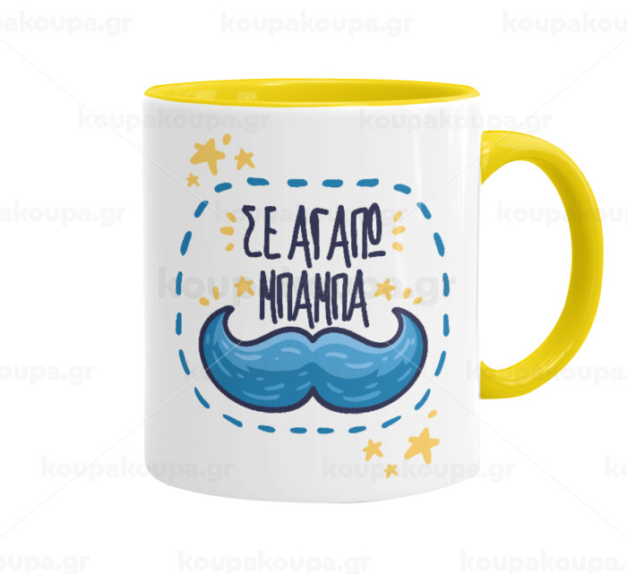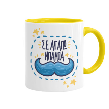 Σε αγαπώ μπαμπά!!!, Κούπα χρωματιστή κίτρινη, κεραμική, 330ml