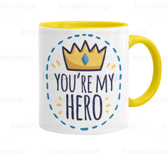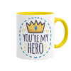 Dad, you are my hero!, Κούπα χρωματιστή κίτρινη, κεραμική, 330ml