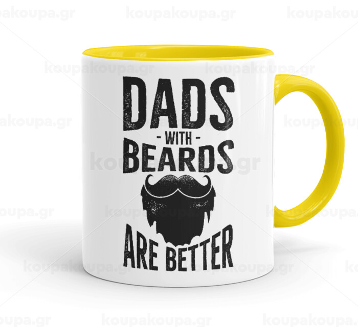 Dad's with beards are better, Κούπα χρωματιστή κίτρινη, κεραμική, 330ml
