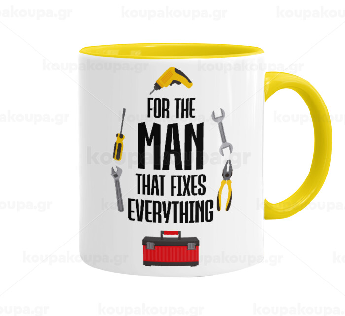 For the man that fixes everything!, Κούπα χρωματιστή κίτρινη, κεραμική, 330ml