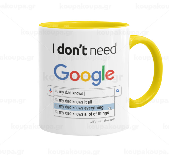 I don't need Google my dad..., Κούπα χρωματιστή κίτρινη, κεραμική, 330ml