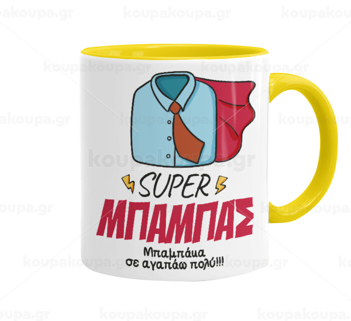 SUPER ΜΠΑΜΠΑΣ, Κούπα χρωματιστή κίτρινη, κεραμική, 330ml