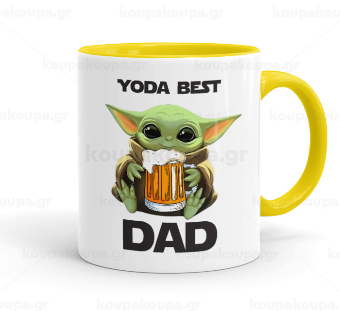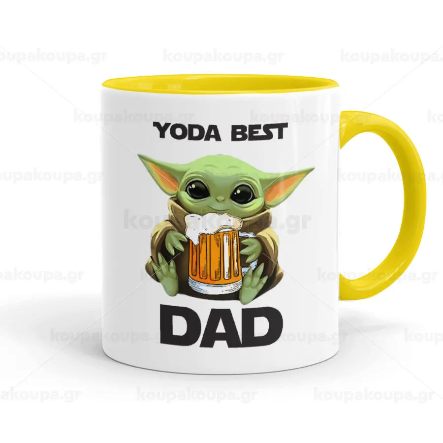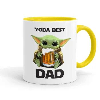 Yoda Best Dad, Κούπα χρωματιστή κίτρινη, κεραμική, 330ml