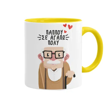 Παππού σε αγαπώ πολύ!, Κούπα χρωματιστή κίτρινη, κεραμική, 330ml