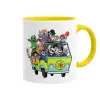 Stitch Halloween scooby car, Κούπα χρωματιστή κίτρινη, κεραμική, 330ml
