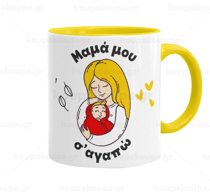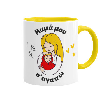 Μανούλα σ'αγαπώ αγκαλιά!, Κούπα χρωματιστή κίτρινη, κεραμική, 330ml