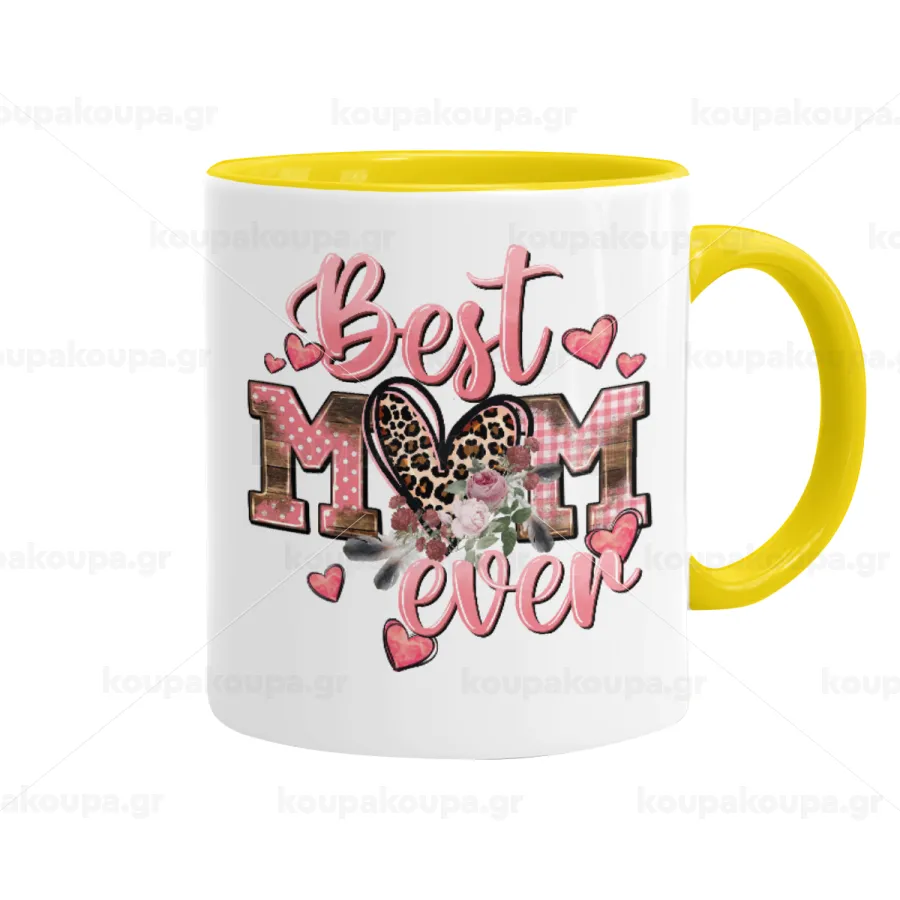 Best mom ever Mother's Day, Κούπα χρωματιστή κίτρινη, κεραμική, 330ml