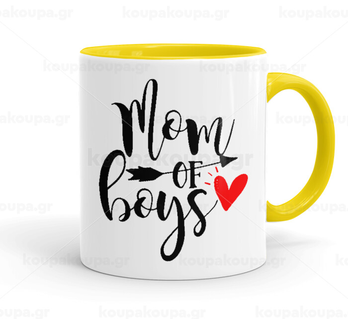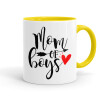 Mom of boys, Κούπα χρωματιστή κίτρινη, κεραμική, 330ml