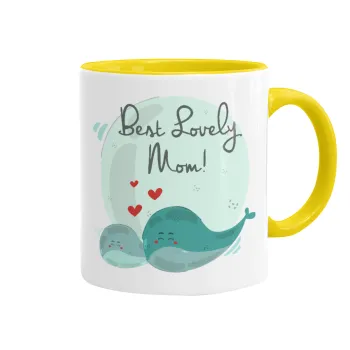 Mothers Day, whales, Κούπα χρωματιστή κίτρινη, κεραμική, 330ml