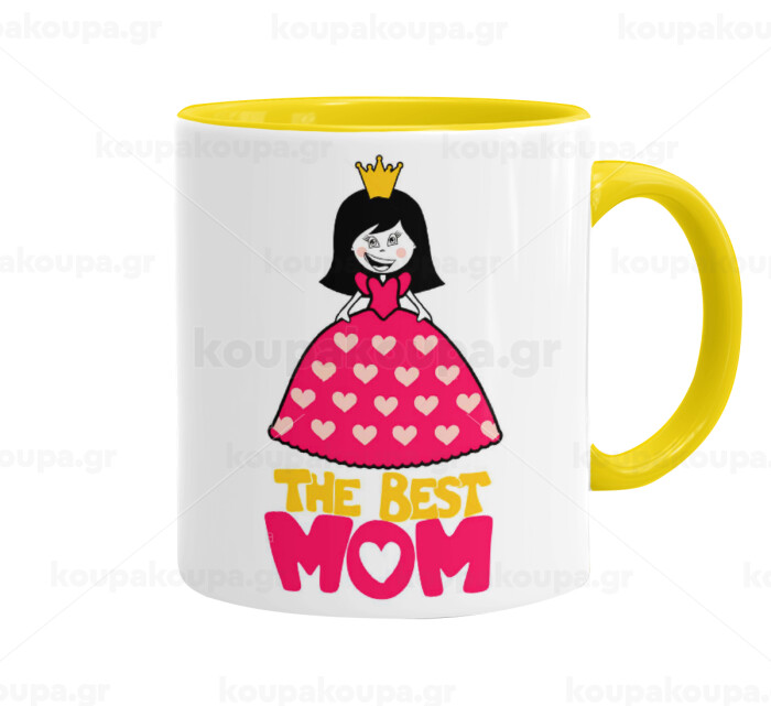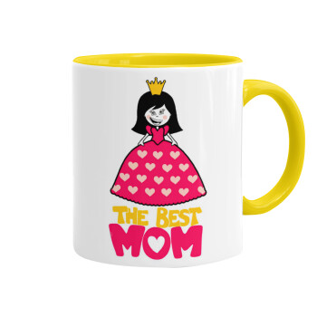 The Best Mom Queen, Κούπα χρωματιστή κίτρινη, κεραμική, 330ml