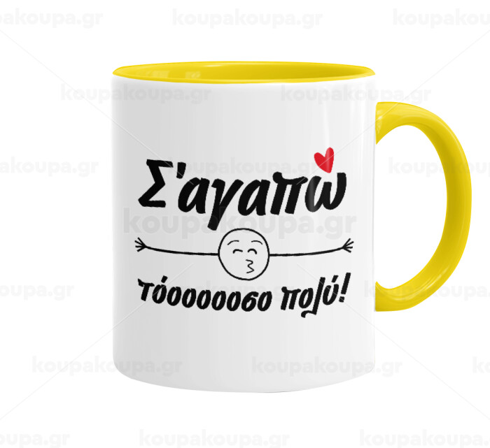 Σ΄ αγαπώ τόοοοοοσο πολύ!!!, Κούπα χρωματιστή κίτρινη, κεραμική, 330ml
