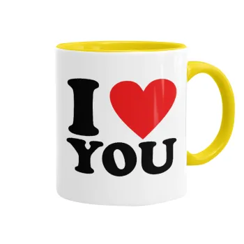 I LOVE YOU, Κούπα χρωματιστή κίτρινη, κεραμική, 330ml
