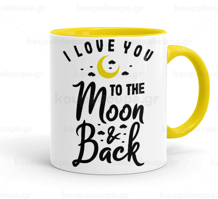 I love you to the moon and back, Κούπα χρωματιστή κίτρινη, κεραμική, 330ml