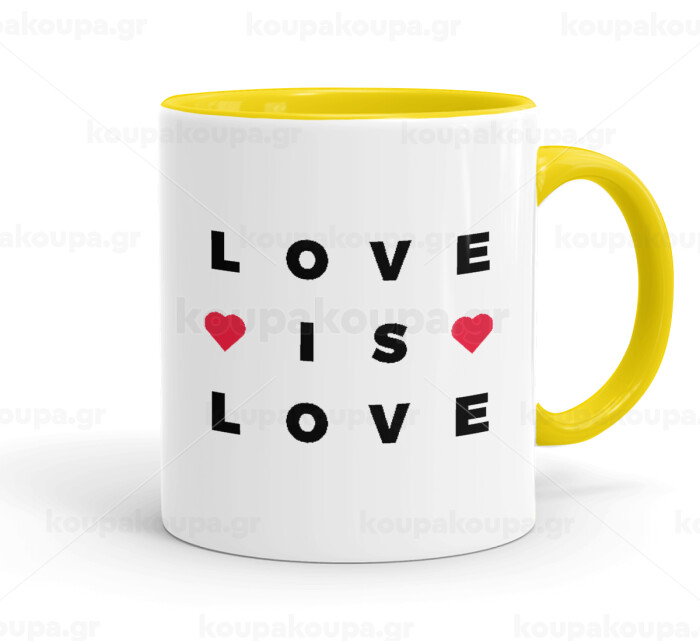 Love is Love, Κούπα χρωματιστή κίτρινη, κεραμική, 330ml