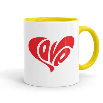 Love, Κούπα χρωματιστή κίτρινη, κεραμική, 330ml