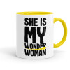 She is my wonder woman, Κούπα χρωματιστή κίτρινη, κεραμική, 330ml