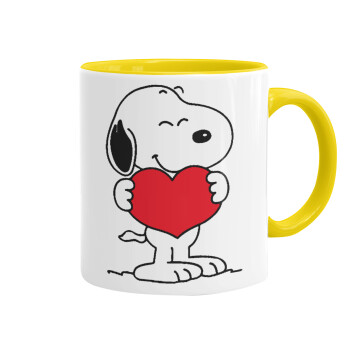 Snoopy takemy heart, Κούπα χρωματιστή κίτρινη, κεραμική, 330ml