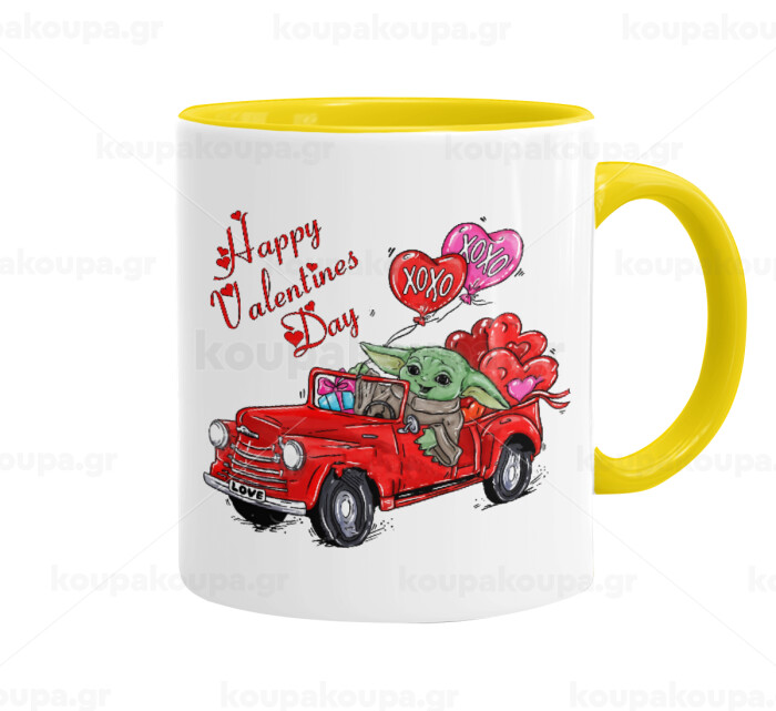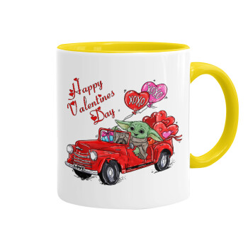 Yoda, happy valentines day (xoxo), Κούπα χρωματιστή κίτρινη, κεραμική, 330ml
