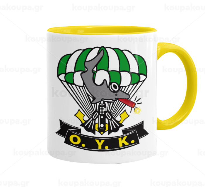 Ο.Υ.Κ., Κούπα χρωματιστή κίτρινη, κεραμική, 330ml