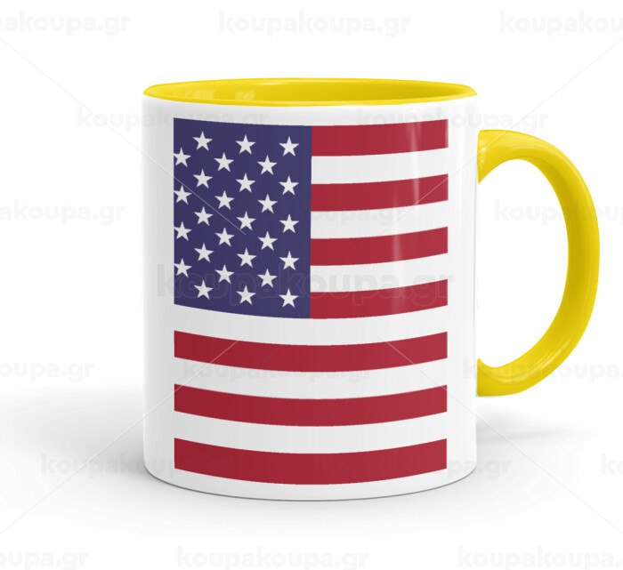 Σημαία Αμερικής, Κούπα χρωματιστή κίτρινη, κεραμική, 330ml