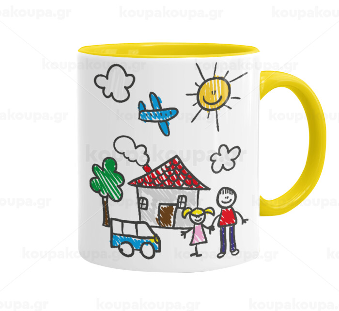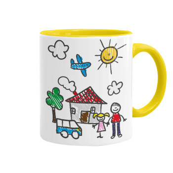 Παιδική ζωγραφιά, Κούπα χρωματιστή κίτρινη, κεραμική, 330ml