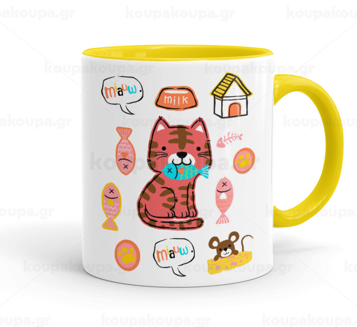Cats and Fishes, Κούπα χρωματιστή κίτρινη, κεραμική, 330ml