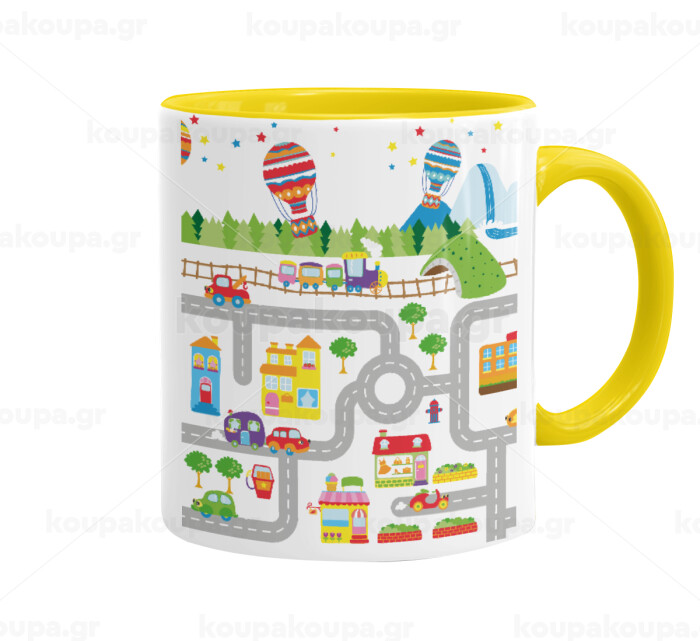 City road track maps, Κούπα χρωματιστή κίτρινη, κεραμική, 330ml