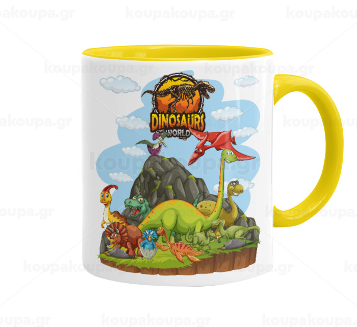 Dinosaur's world, Κούπα χρωματιστή κίτρινη, κεραμική, 330ml