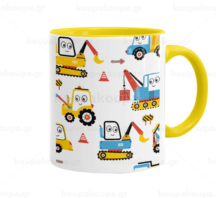 Hand drawing building truck, Κούπα χρωματιστή κίτρινη, κεραμική, 330ml