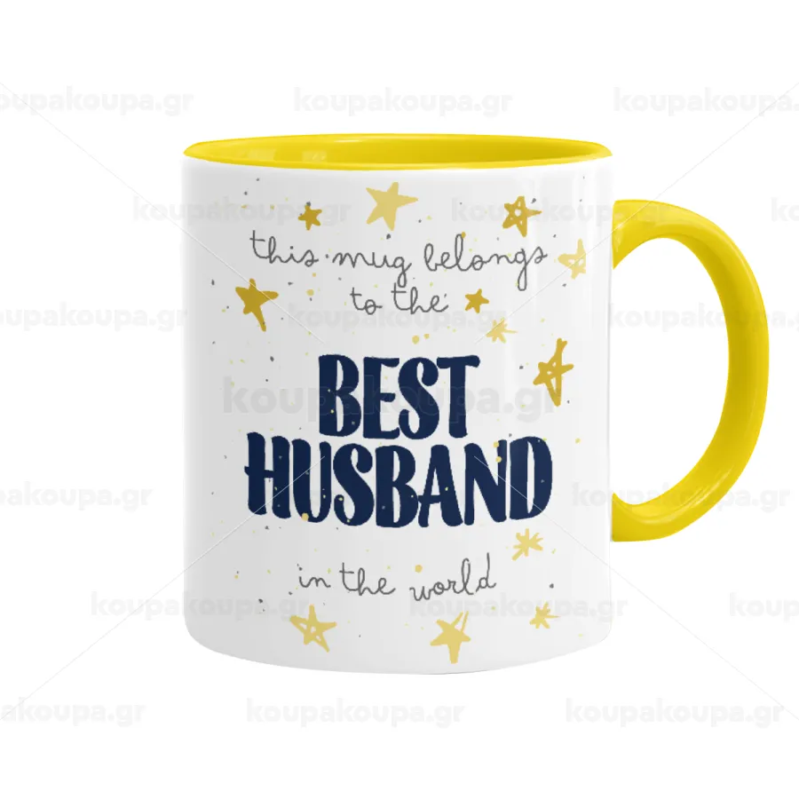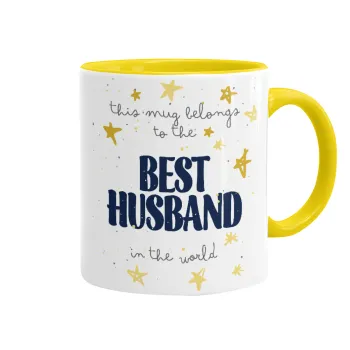 This mug belongs to the BEST HUSBAND in the world!, Κούπα χρωματιστή κίτρινη, κεραμική, 330ml