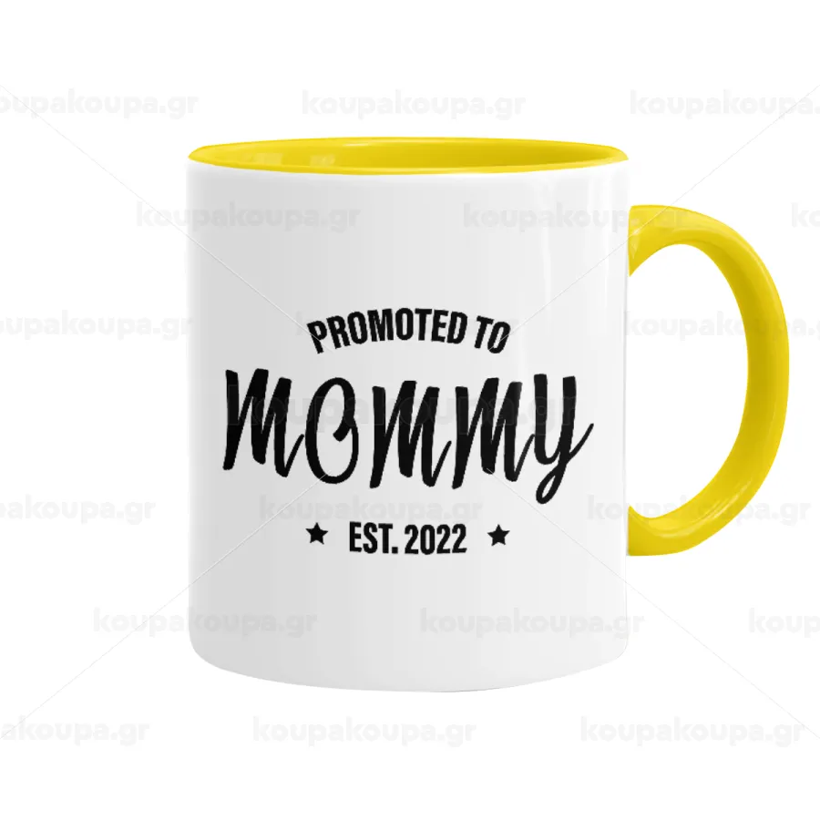 Promoted to Mommy, Κούπα χρωματιστή κίτρινη, κεραμική, 330ml