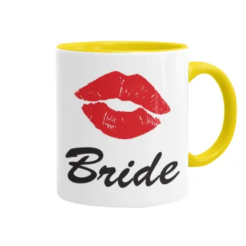 Bride kiss, Κούπα χρωματιστή κίτρινη, κεραμική, 330ml