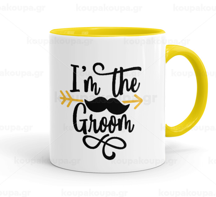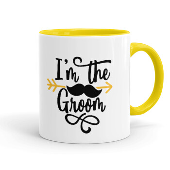 I'm the groom mustache, Κούπα χρωματιστή κίτρινη, κεραμική, 330ml