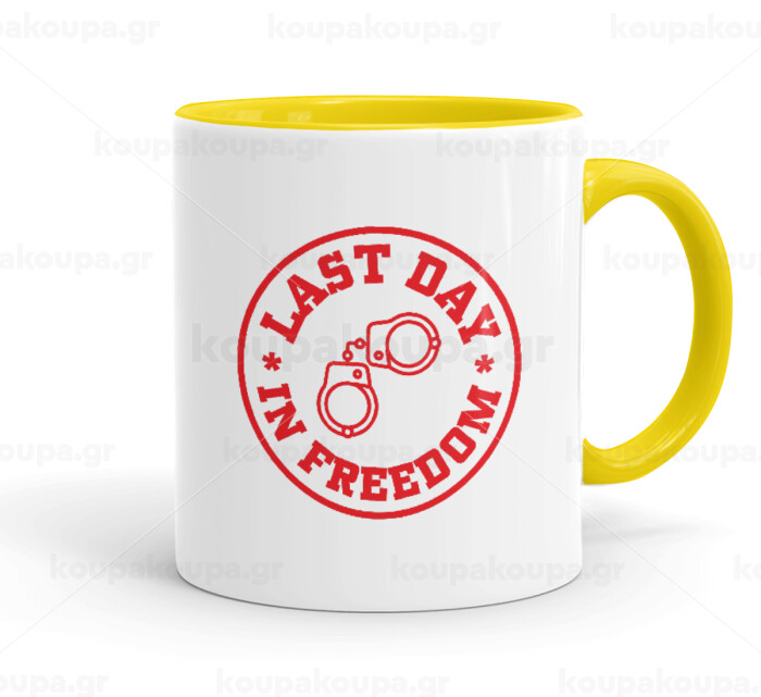 Last day freedom, Κούπα χρωματιστή κίτρινη, κεραμική, 330ml